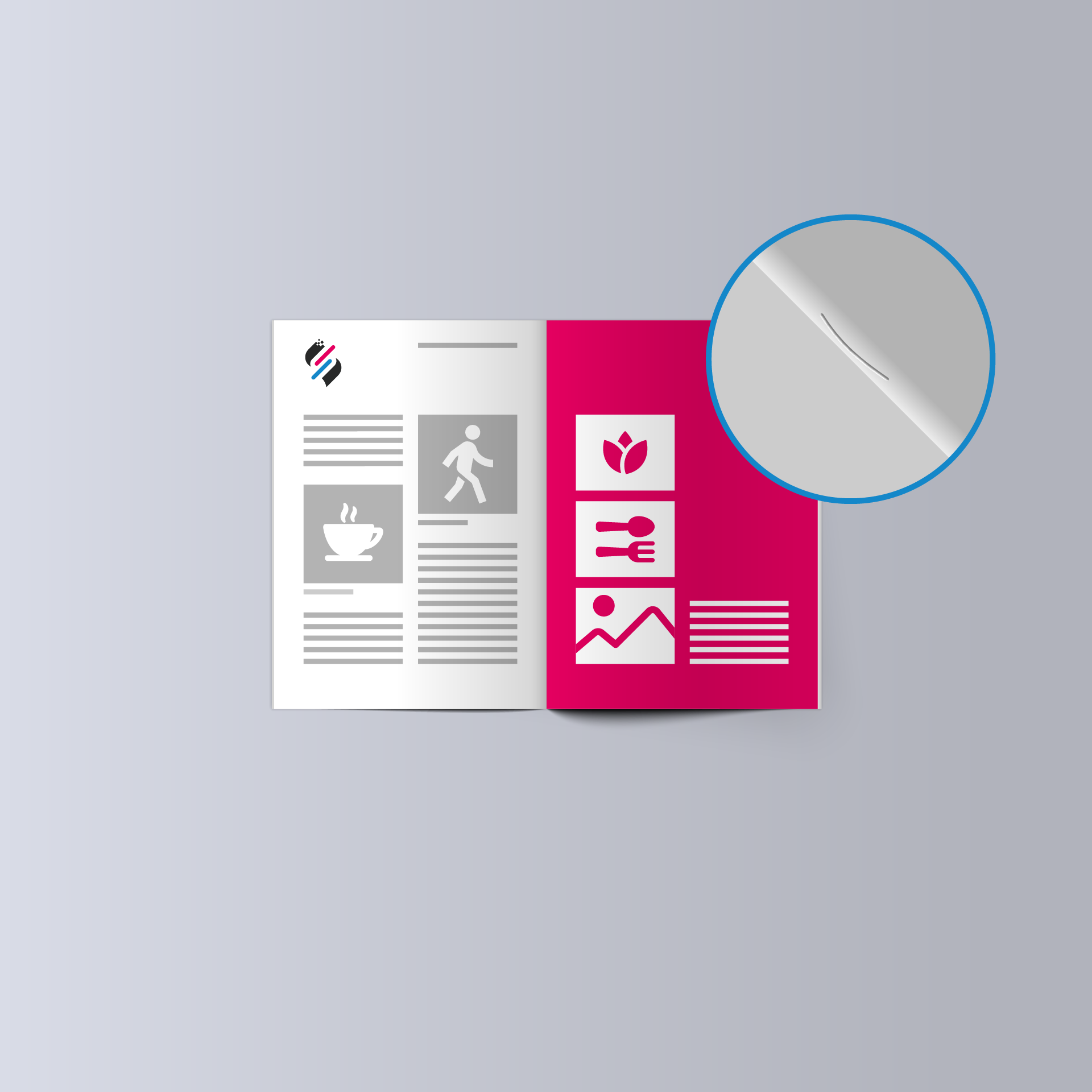 - Semplicità e Economicità: La rilegatura a punto metallico è economica e veloce, ideale per tirature elevate a costi contenuti.